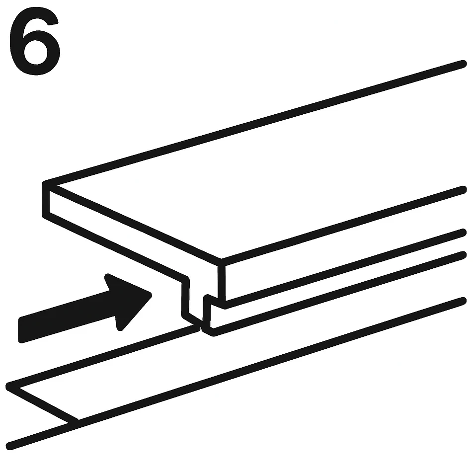Coloca el primer tablón con el sistema clic hacia afuera. Alinea el siguiente y encaja pestaña con pestaña, asegurándote que la pestaña pronunciada quede debajo de la pestaña más pequeña.