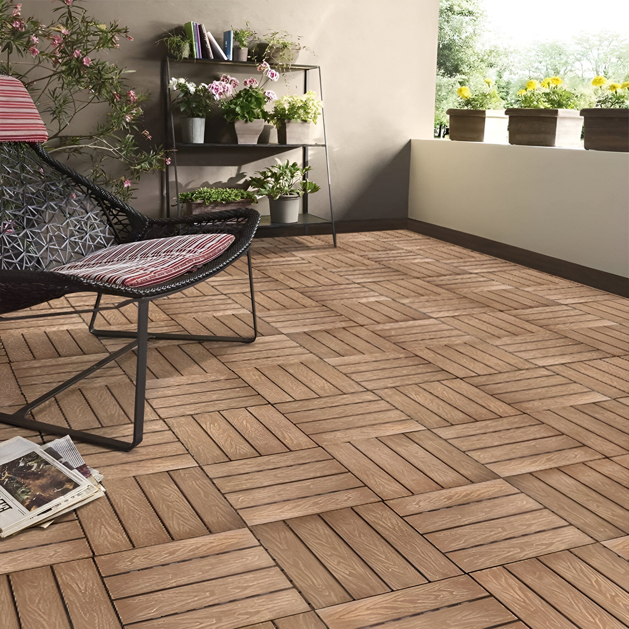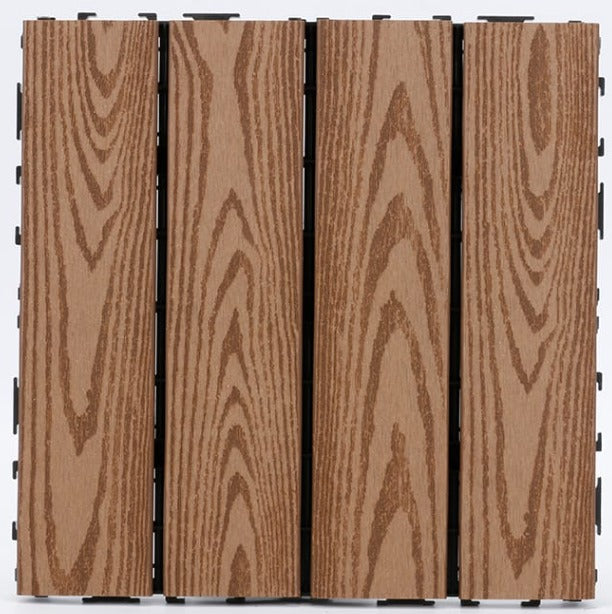 Práctico piso impermeable pensado para exteriores, encastrable, de alta calidad y detalles cuidados. La medida de cada baldosa es de 30*30 con una altura aproxmiada de 2,8cm.