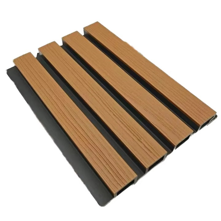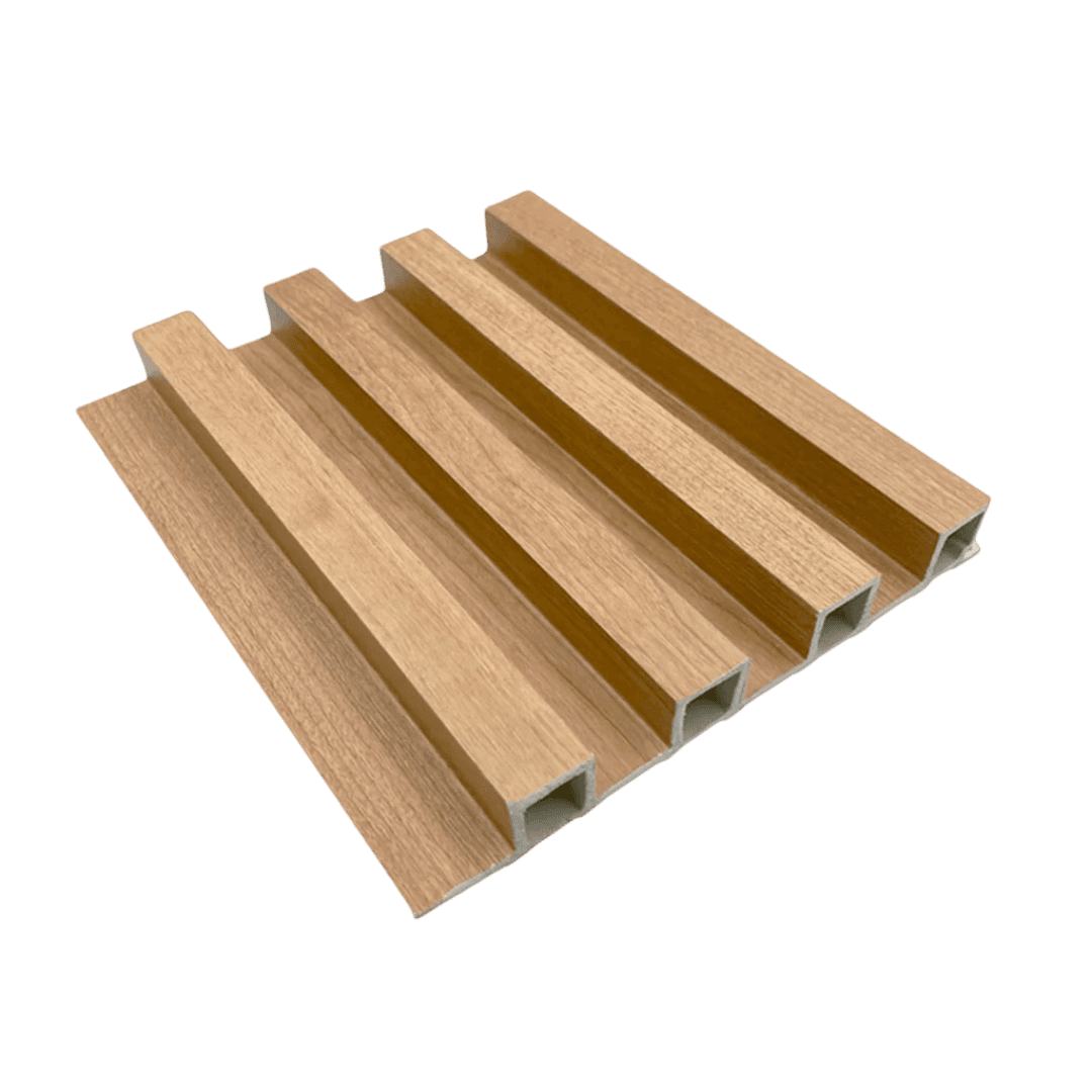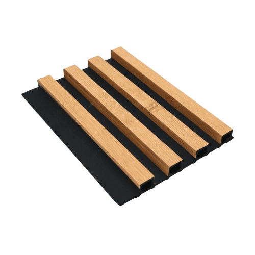 Dale un toque cálido y natural a tus espacios exteriores con el WPC Wall Panel Exterior Teak con fondo negro. Su diseño simil madera en tono teak con fondo negro aporta calidez y estilo, combinando estética y durabilidad en un solo producto.